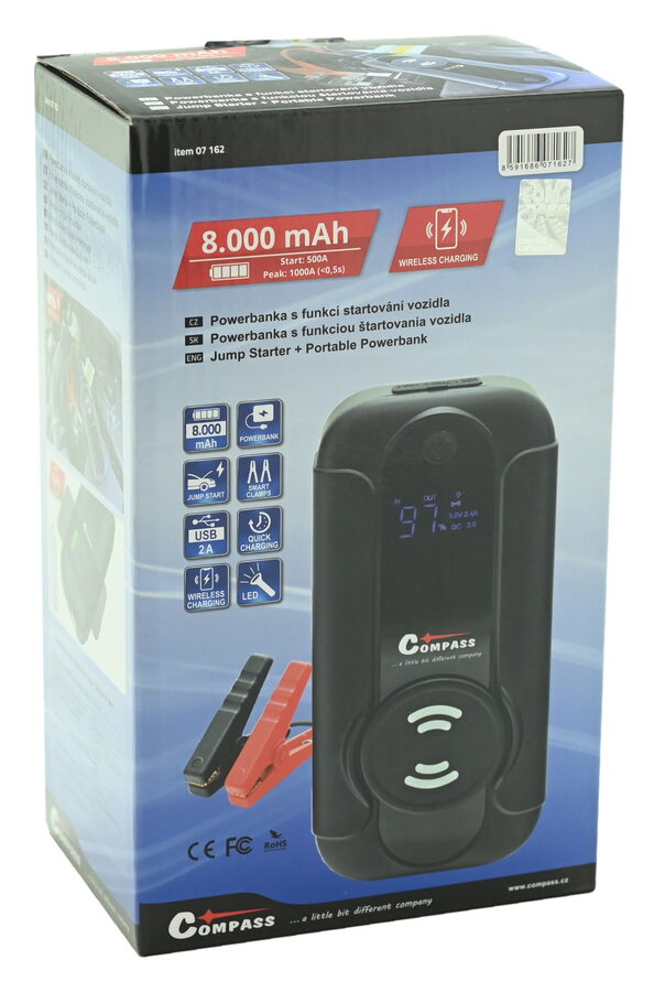 - Powerbanka s funkcí JUMP STARTER 8.000mAh 1000A s Qi bezdrátovým nabíjením