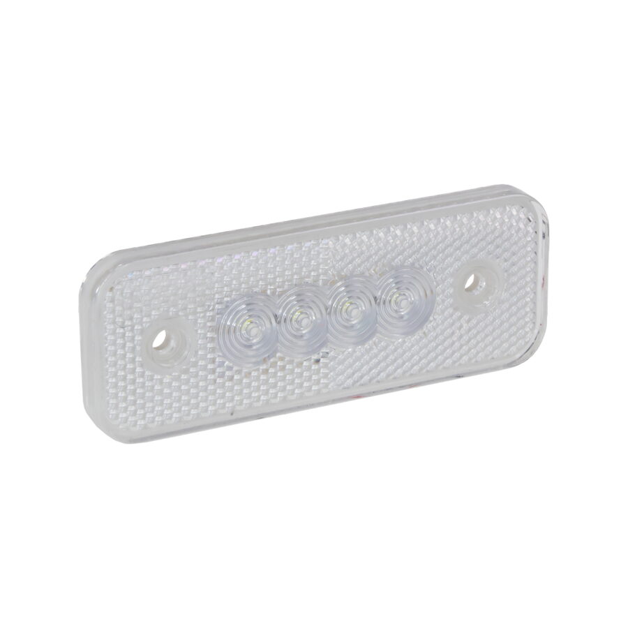 Přídavné přední obrysové (poziční) bílé LED světlo s odraznou plochou, vhodné k osvětlení nákladních vozidel, kamionů a návěsů.