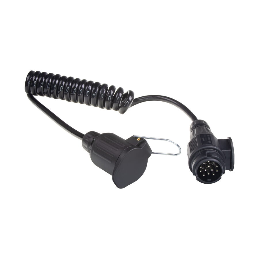 Praktický propojovací spirálový kabel zakončený 1x zástrčkou + 1x zásuvkou 13pin / 12 V. .