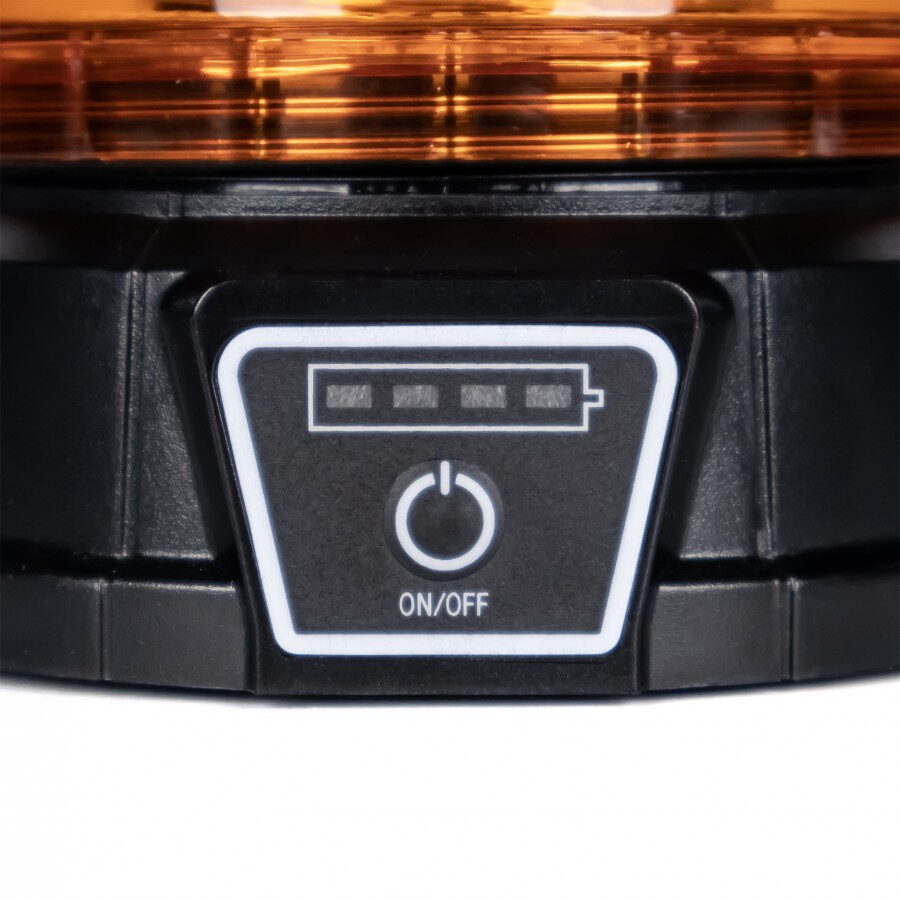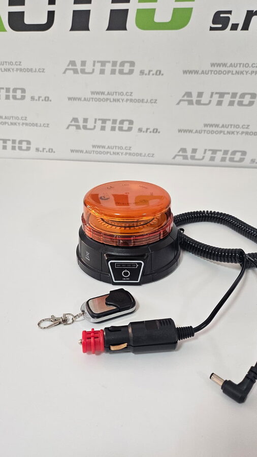 Akumulátorový nabíjecí výstražný oranžový maják s LED technologií a třemi režimy blikání a s možností ovládání pomocí dálkového ovladače.