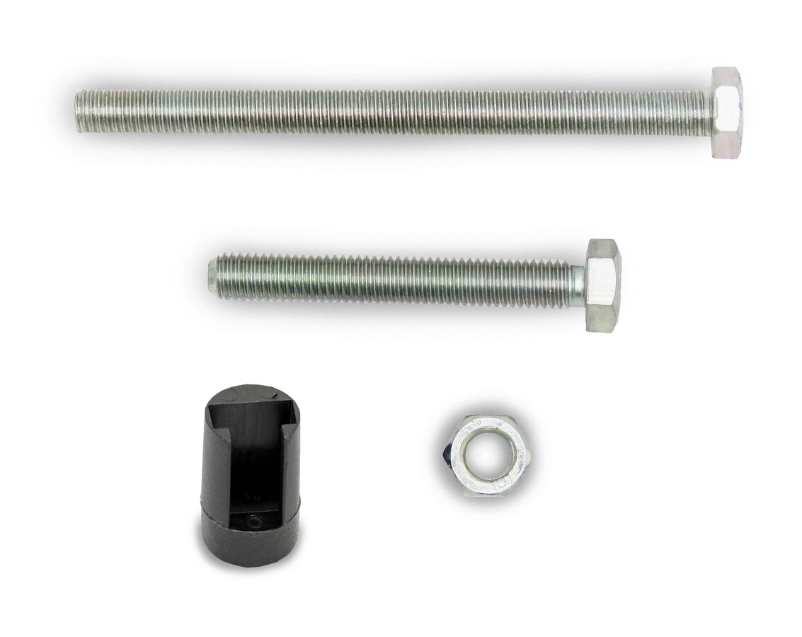 Sada šroubů stahovacích čelistí nosičů kol na tažné zařízení Menabo. Sada obsahuje 1x šrub dlouhý, 1x šrub krátký, 1x matici, 1x jistící prvek matice.