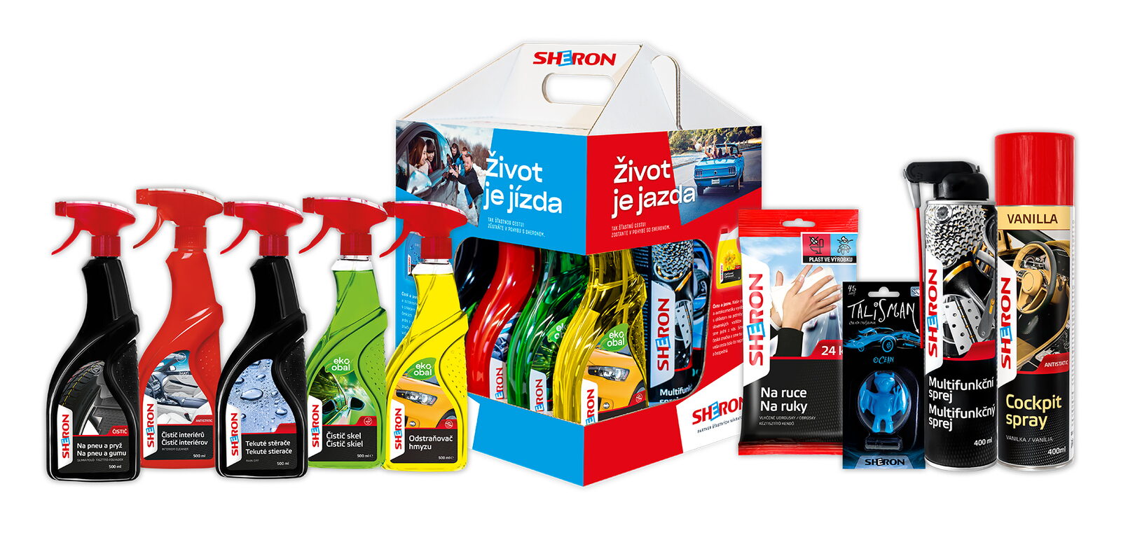 SHERON Dárkový box je prémiové balení autokosmetiky v praktické box krabici s odnosným uchem.