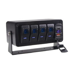 Panel s 4x spínači Rocker, voltmetr + USB/USB-C zásuvka, 12/24V