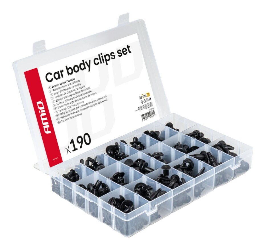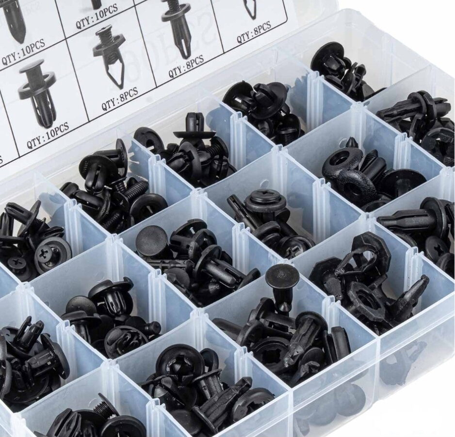 Obsahuje různé spony, klipy a upevňovací kolíky, které umožňují rychlé a bezpečné upevnění karosářských panelů, lišt, plastových krytů a dalších částí karoserie.