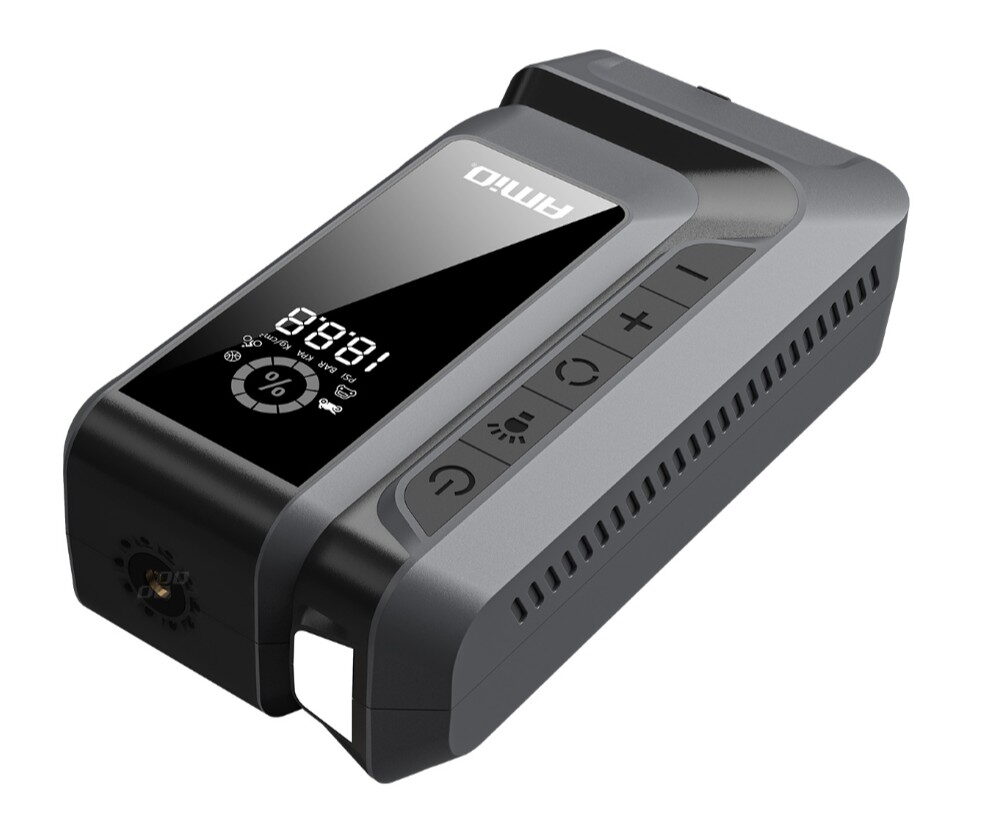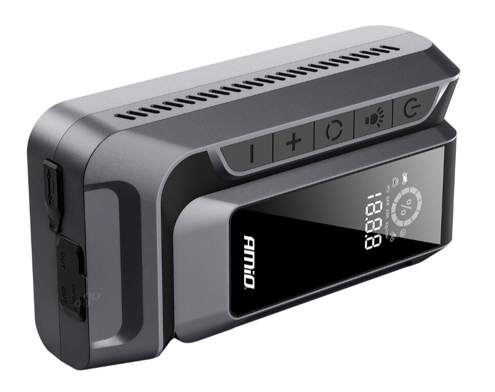 Startovací zařízení AMiO 4v1 12Ah je profesionální a multifunkční zařízení, které kombinuje funkce startovacího boosteru, powerbanky, vzduchového kompresoru a LED baterky.