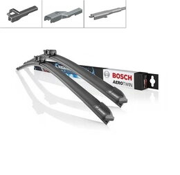Sada dvou plochých stěračů BOSCH (řidič 650 + spolujezdec 450) se speciálním uchycením. Délky stěračů a systém uchycení na ramínko jsou přizpůsobeny vybraným vozům.