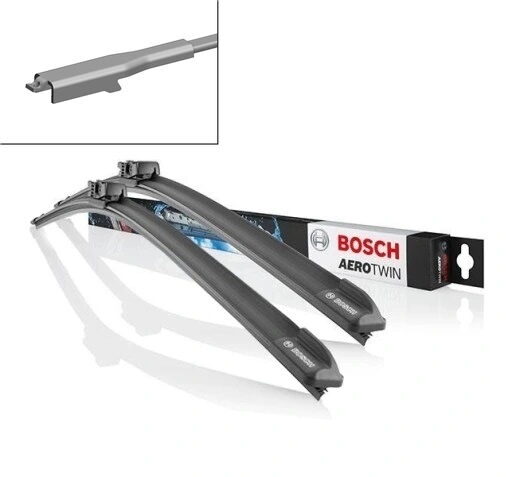 Sada dvou plochých stěračů BOSCH (řidič 625 + spolujezdec 500) se speciálním uchycením. Délky stěračů a systém uchycení na ramínko jsou přizpůsobeny vybraným vozům.