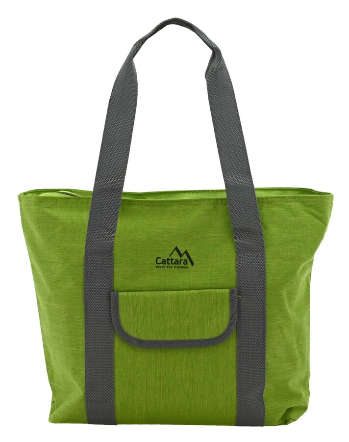 Vyrobena je z odolného polyesteru s nízkou hmotností 210 g, v zeleném provedení vhodném do přírody. Pro pohodlné přenášení je taška doplněna širokým popruhem šedé barvy.