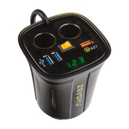 Dvojitá CL zásuvka s 3x USB+voltmetrem do držáku nápojů