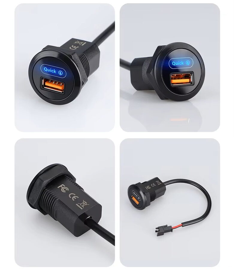 - USB nabíječka QC3.0 do panelu, kulatá, 12/24V