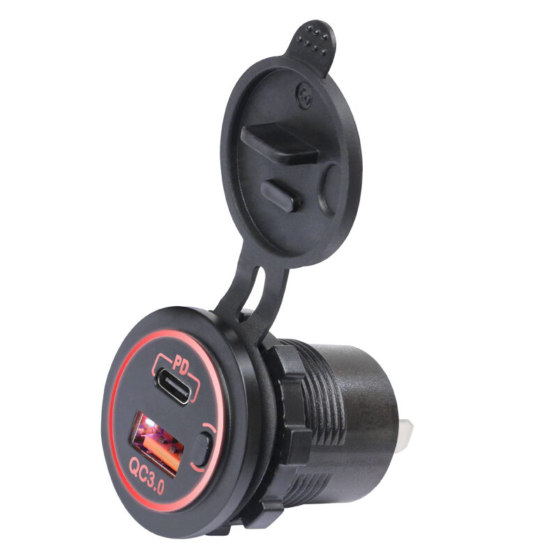 USB nabíječka do panelu, QC3.0 + USB-C, s krytkou proti prachu a vlhkosti.
