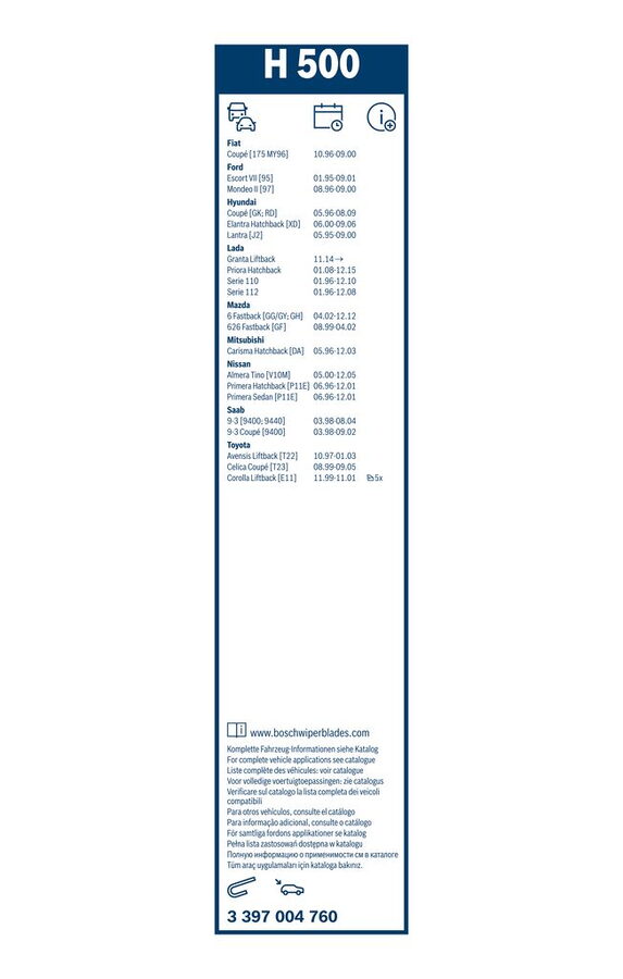 Zadní stěrač FORD Escort VII [95] r.v. 1995-2001, BOSCH H500 500mm