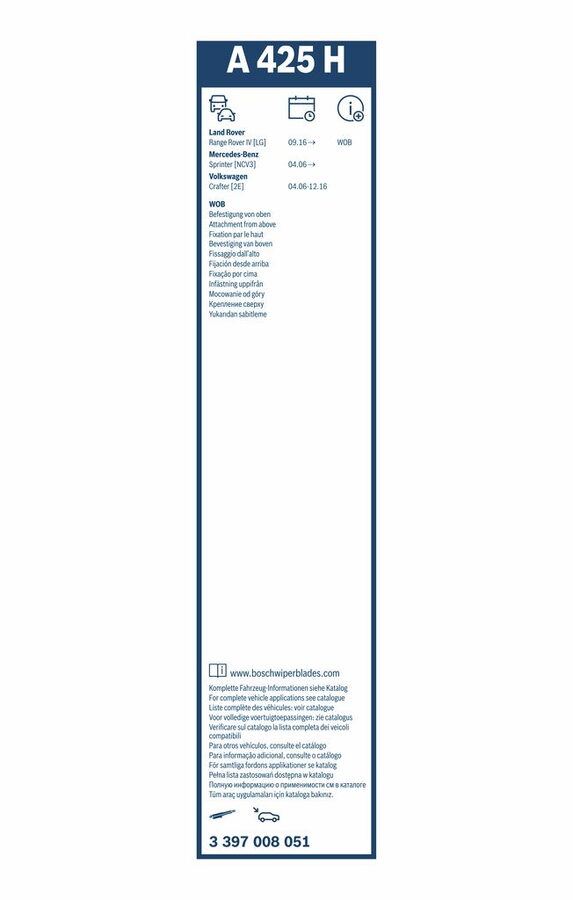 Zadní stěrač LAND ROVER Range Rover IV [LG] r.v. 2016-2021, BOSCH A425H 425mm