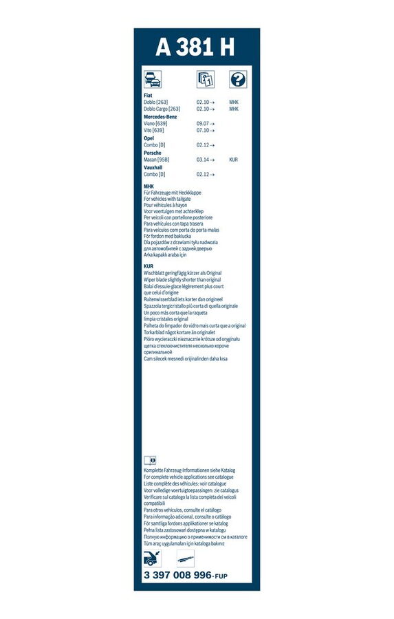 Zadní stěrač MERCEDES Viano [639] r.v. 2007->, BOSCH A381H 380mm