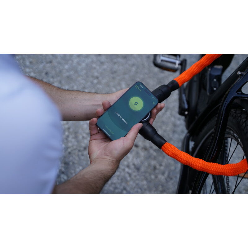 Pevný ocelový řetěz chráněný textilním pláštěm, jednoduché sdílení přístupu a moderní vzhled – ideální pro každodenní použití ve městě.