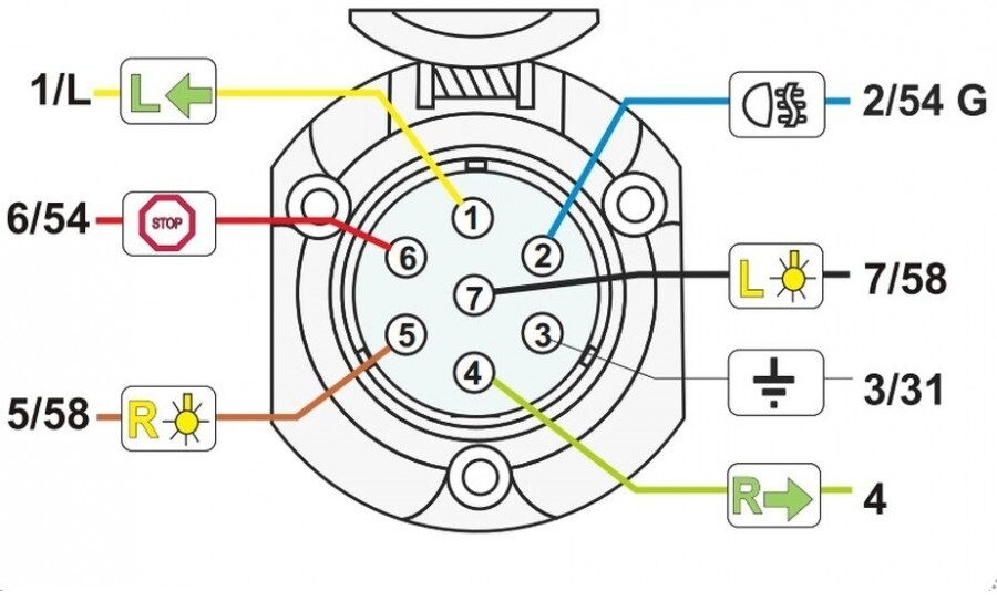 - Zásuvka 7P pro tažné zařízení + těsnění - 12/24V, plast