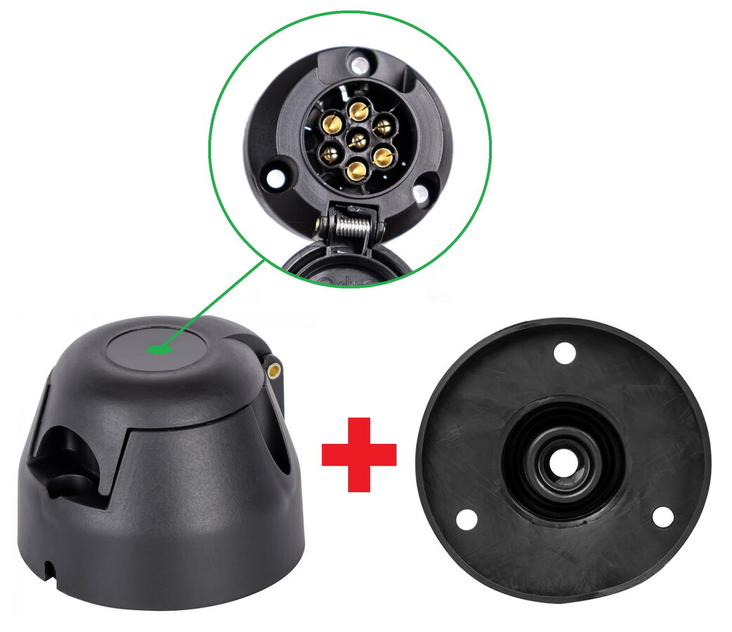 Zásuvka 7P pro tažné zařízení + těsnění - 12/24V, plast